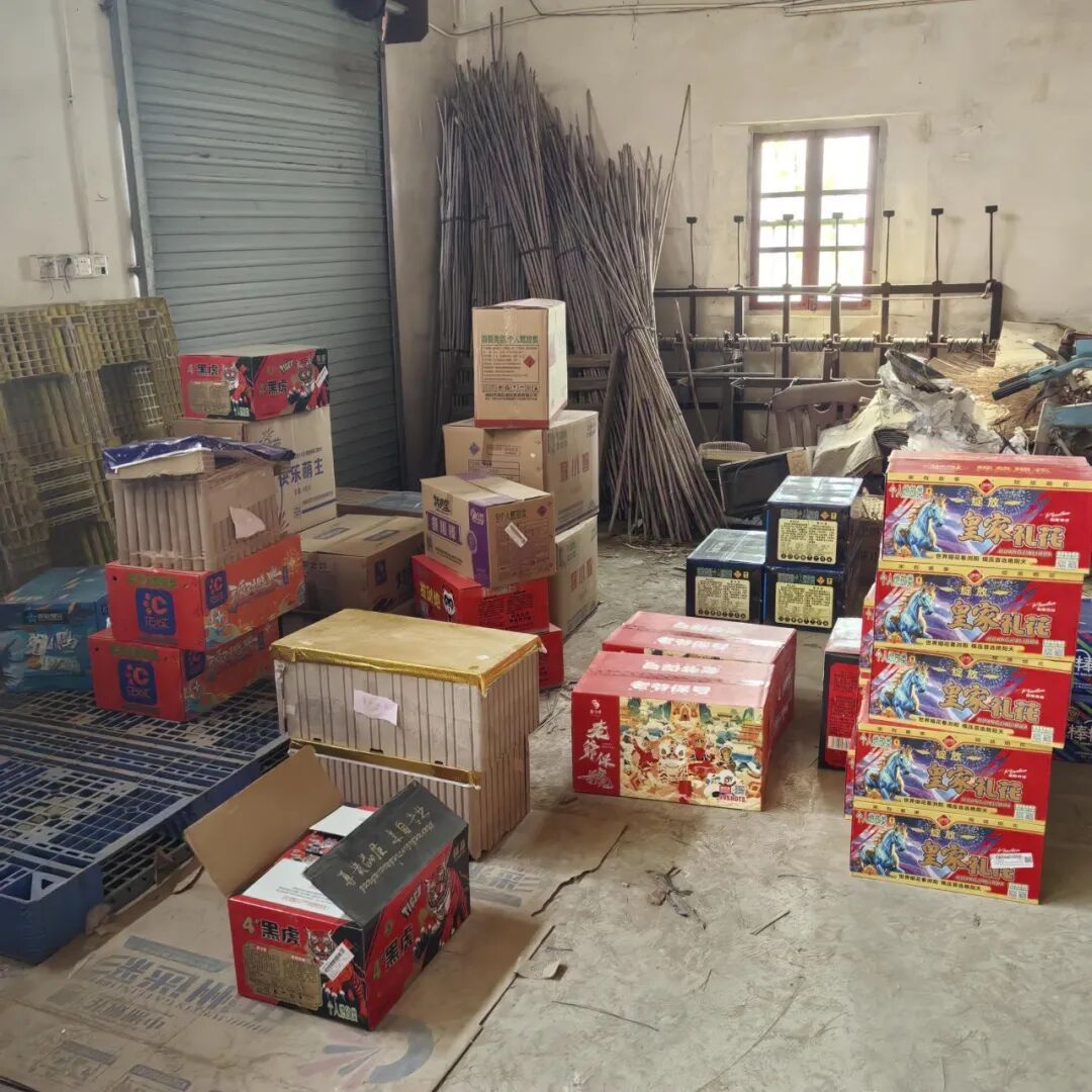 2026年2月20日,海丰县公安局治安大队联合县应急局、可塘派出所在可塘镇某烟花爆竹经营部查处一非法储存烟花爆竹仓库,查获烟花爆竹400余件,目前案件进一步侦办中。